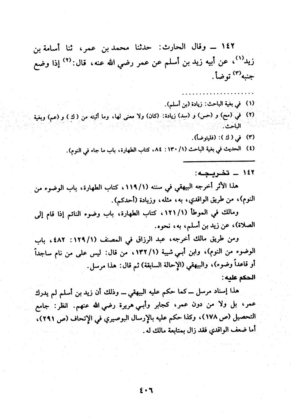 حَدَّثَنَا مُحَمَّدُ بْنُ عُمَرَ، ثنا أُسَامَةُ بْنُ زَيْدٍ، عَنْ أَبِيهِ زَيْدِ بْنِ أَسْلَمَ عَنْ عُمَرَ رَضِيَ اللهُ عَنْهُ، قَالَ: §إِذَا وَضَعَ جَنْبَهُ تَوَضَّأْ