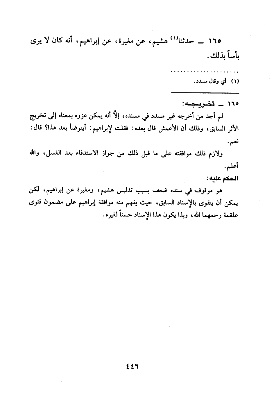 165 - حَدَّثَنَا (¬1) هُشَيْمٌ، عَنْ مُغِيرَةَ، عَنْ إِبْرَاهِيمَ، أَنَّهُ كان لا يرى بأسًا بذلك.