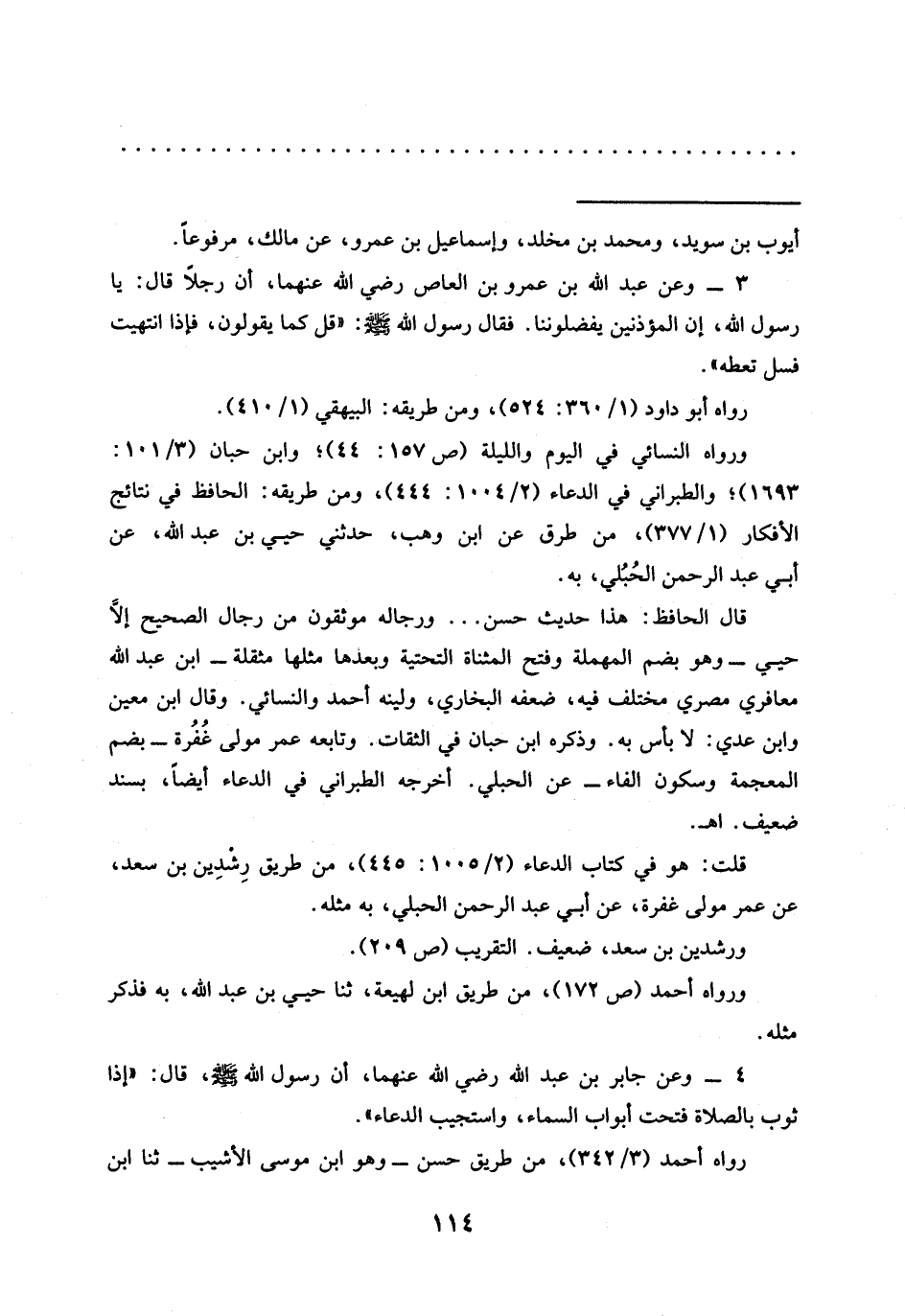 ورواه النسائي في اليوم والليلة (ص 157: 44)؛ وابن حبان (3/ 101: 1693)؛ والطبراني في الدعاء (2/ 1004: 444)، ومن طريقه: الحافظ في نتائج الأفكار (1/ 377)، من طرق عن ابن وهب، حَدَّثَنِي حُيَيُّ بْنُ عَبْدِ اللَّهِ، عَنْ أَبِي عبد الرحمن الحُبُلي، به.