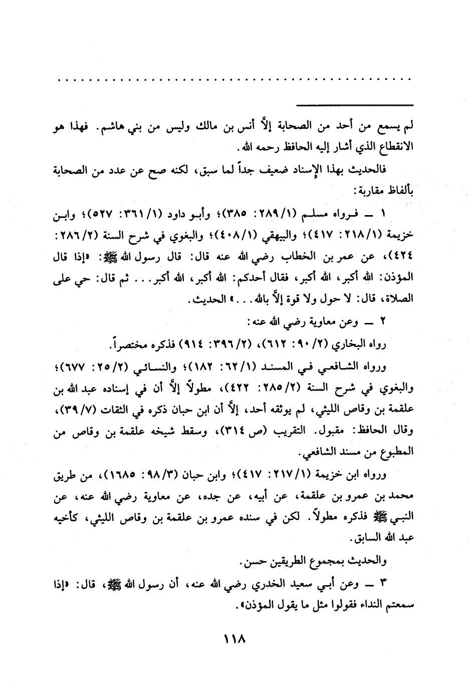 1 - فرواه مسلم (1/ 289: 385)؛ وأبو داود (1/ 361: 527)؛ وابن خزيمة (1/ 218: 417)؛ والبيهقي (1/ 408)؛ والبغوي في شرح السنة (2/ 286: 424)، عن عُمَرَ بْنِ الْخَطَّابِ رَضِيَ اللَّهُ عَنْهُ قَالَ: قَالَ رَسُولُ اللَّهِ - صَلَّى اللَّهُ عَلَيْهِ وَسَلَّمَ -: "إذا قال المؤذن: الله أكبر، الله أكبر، فقال أحدكم: الله أكبر، الله أكبر ... ثم قال: حي على الصلاة، قَالَ: لَا حَوْلَ وَلَا قُوَّةَ إلَّا بِاللَّهِ. . ." الحديث.