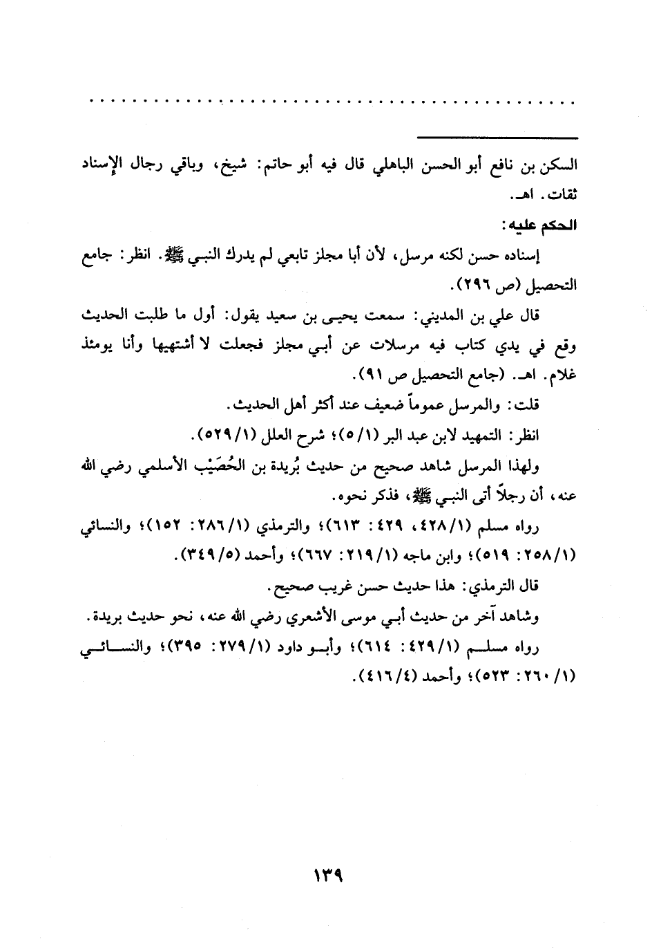 إسناده حسن لكنه مرسل، لأن أبا مجلز تابعي لم يدرك النبي - صلى الله عليه وسلم -. انظر: جامع التحصيل (ص 296).