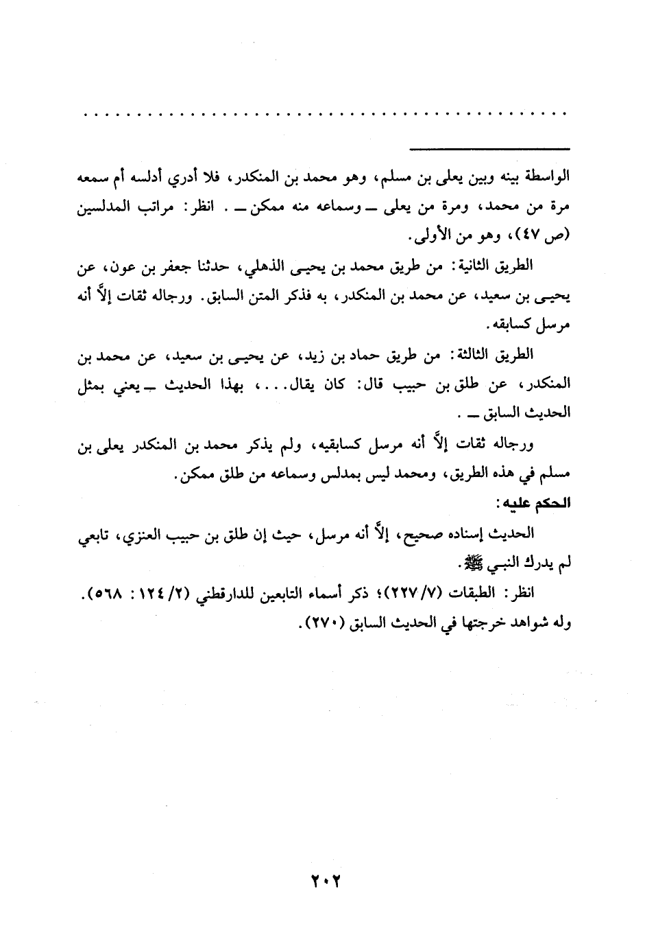 ورجاله ثقات إلَّا أنه مرسل كسابقيه، ولم يذكر محمد بن المنكدر يعلى بن مسلم في هذه الطريق، ومحمد ليس بمدلس وسماعه من طلق ممكن.