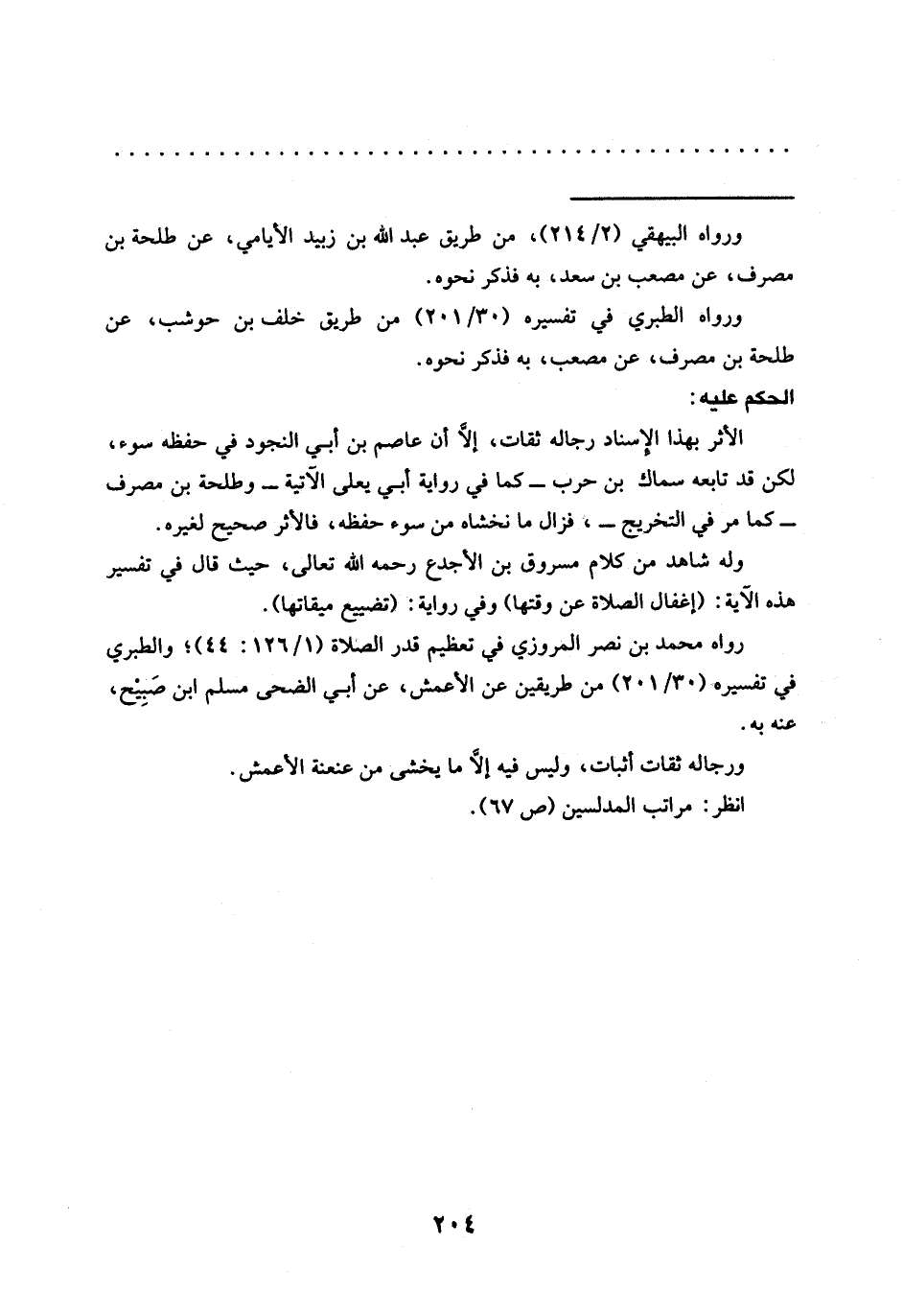 ورواه الطبري في تفسيره (30/ 201) من طريق خلف بن حوشب، عن طلحة بن مصرف، عن مصعب، به فذكر نحوه.