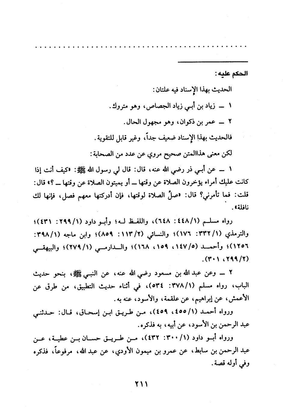 رواه مسلم (1/ 448: 648)، واللفظ له؛ وأبو داود (1/ 299: 431)؛ والترمذي (1/ 332: 176)؛ والنسائي (2/ 113: 859)؛ وابن ماجه (1/ 398: 1256)؛ وأحمد (5/ 147، 159، 168)؛ والدارمي (1/ 279)؛ والبيهقي (2/ 299، 301).