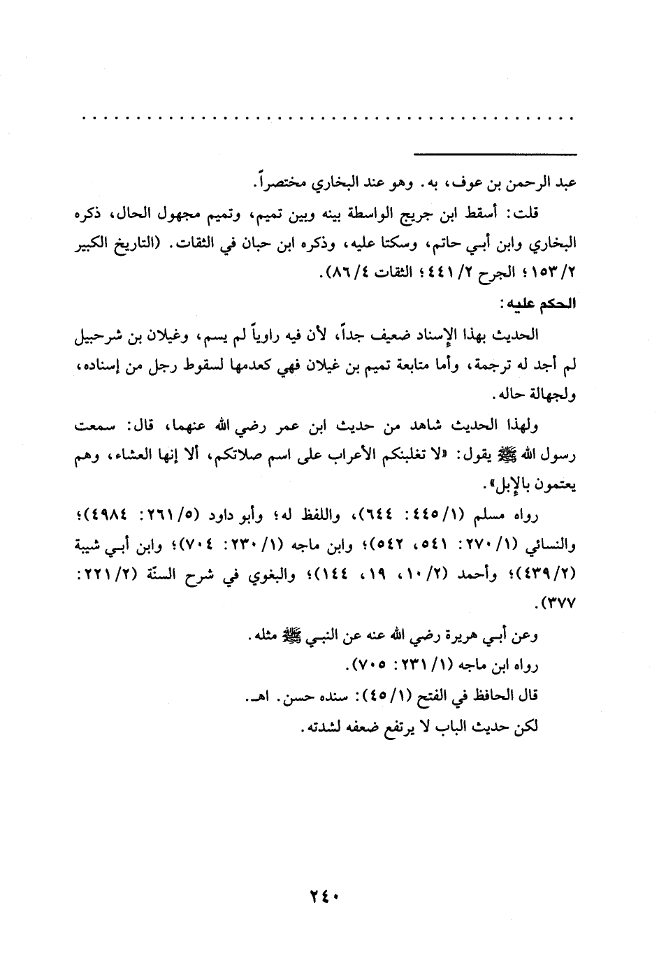 قلت: أسقط ابن جريج الواسطة بينه وبين تميم، وتميم مجهول الحال، ذكره البخاري وابن أبي حاتم، وسكتا عليه، وذكره ابن حبان في الثقات. (التاريخ الكبير 2/ 153؛ الجرح 2/ 441؛ الثقات 4/ 86).