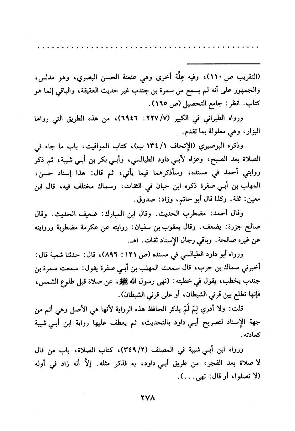 وذكره البوصيري (الإتحاف 1/ 134 ب)، كتاب المواقيت، باب ما جاء في الصلاة بعد الصبح، وعزاه لأبي داود الطيالسي، وأبي بكر بن أبي شية، ثم ذكر روايتي أحمد في مسنده، وسأذكرهما فيما يأتي، ثم قال: هذا إسناد حسن، المهلب بن أبي صفرة ذكره ابن حبان في الثقات، وسماك مختلف فيه، قال ابن معين: ثقة. وكذا قال أبو حاتم، وزاد: صدوق.