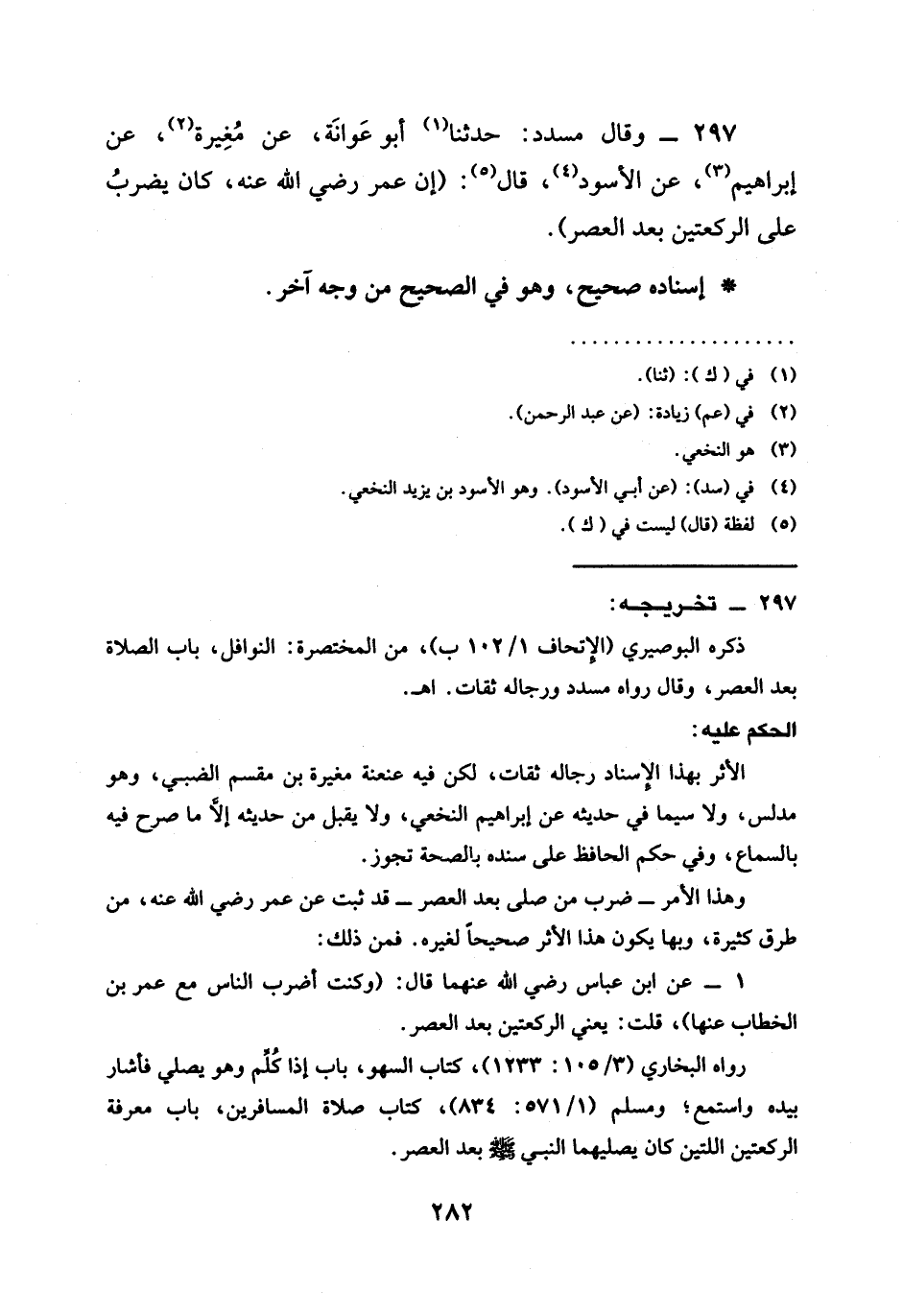 297 - وَقَالَ مُسَدَّدٌ حَدَّثَنَا أَبُو عَوَانَةَ عَنْ مُغِيرَةَ عَنْ إِبْرَاهِيمَ عَنِ الْأَسْوَدِ قَالَ (§أَنَّ عُمَرَ رَضِيَ اللَّهُ عَنْهُ كَانَ يَضْرِبُ عَلَى الرَّكْعَتَيْنِ بَعْدَ الْعَصْرِ