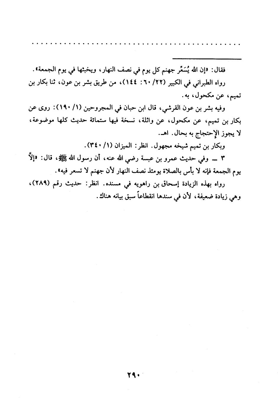 = فقال: "إن الله يُسَعِّر جهنم كل يوم في نصف النهار، ويخبثها في يوم الجمعة".