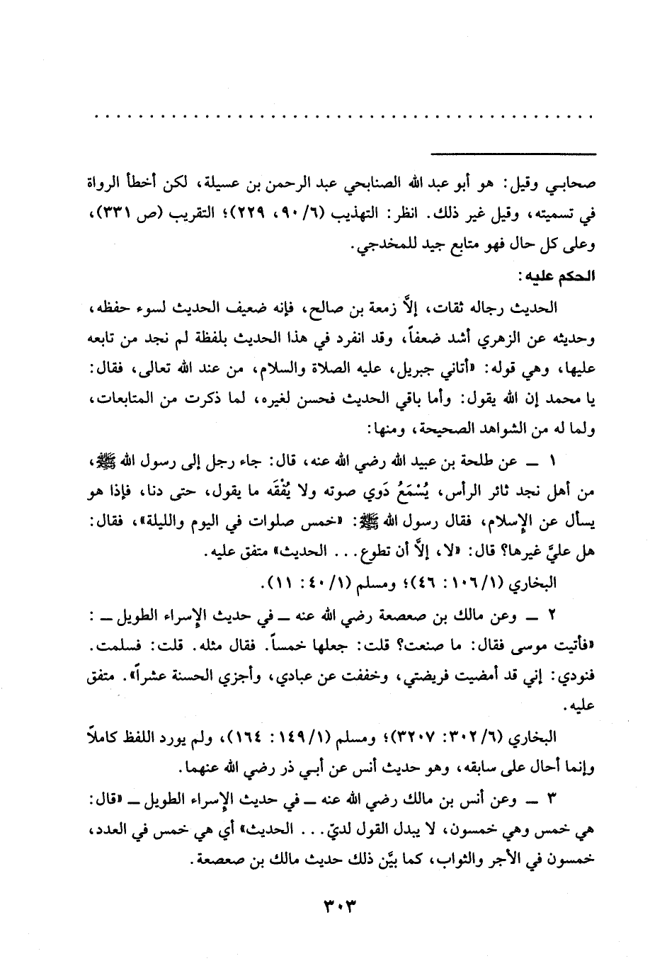= صحابي وقيل: هو أبو عبد الله الصنابحي عبد الرحمن بن عسيلة، لكن أخطأ الرواة في تسميته، وقيل غير ذلك. انظر: التهذيب (6/ 90، 229)؛ التقريب (ص 331)، وعلى كل حال فهو متابع جيد للمخدجي.