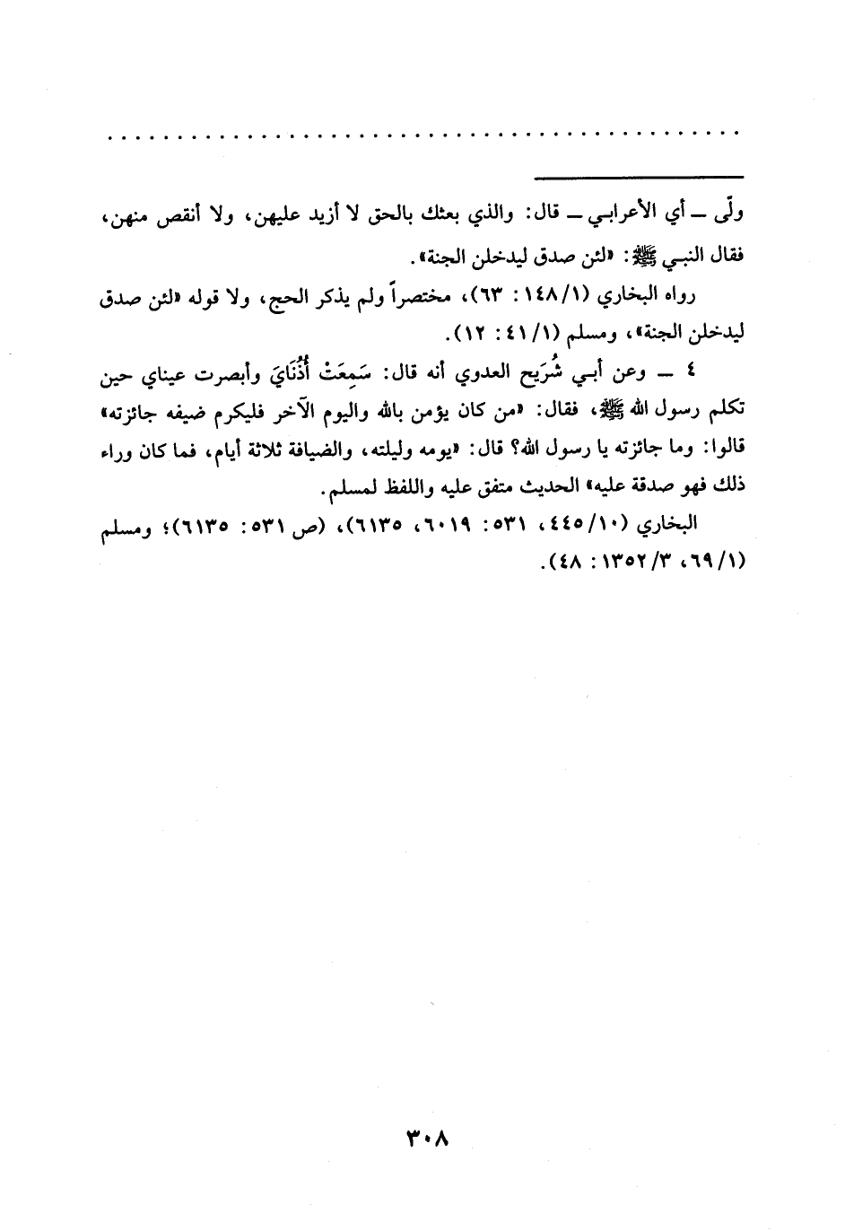 4 - وعن أبي شُرَيح العدوي أنه قال: سَمِعَت أُذُنَايَ وأبصرت عيناي حين تكلم رسول الله - صلى الله عليه وسلم -، فقال: "مَنْ كَانَ يُؤْمِنُ بِاللَّهِ وَالْيَوْمِ الْآخِرِ فَلْيُكْرِمْ ضيفه جائزته"