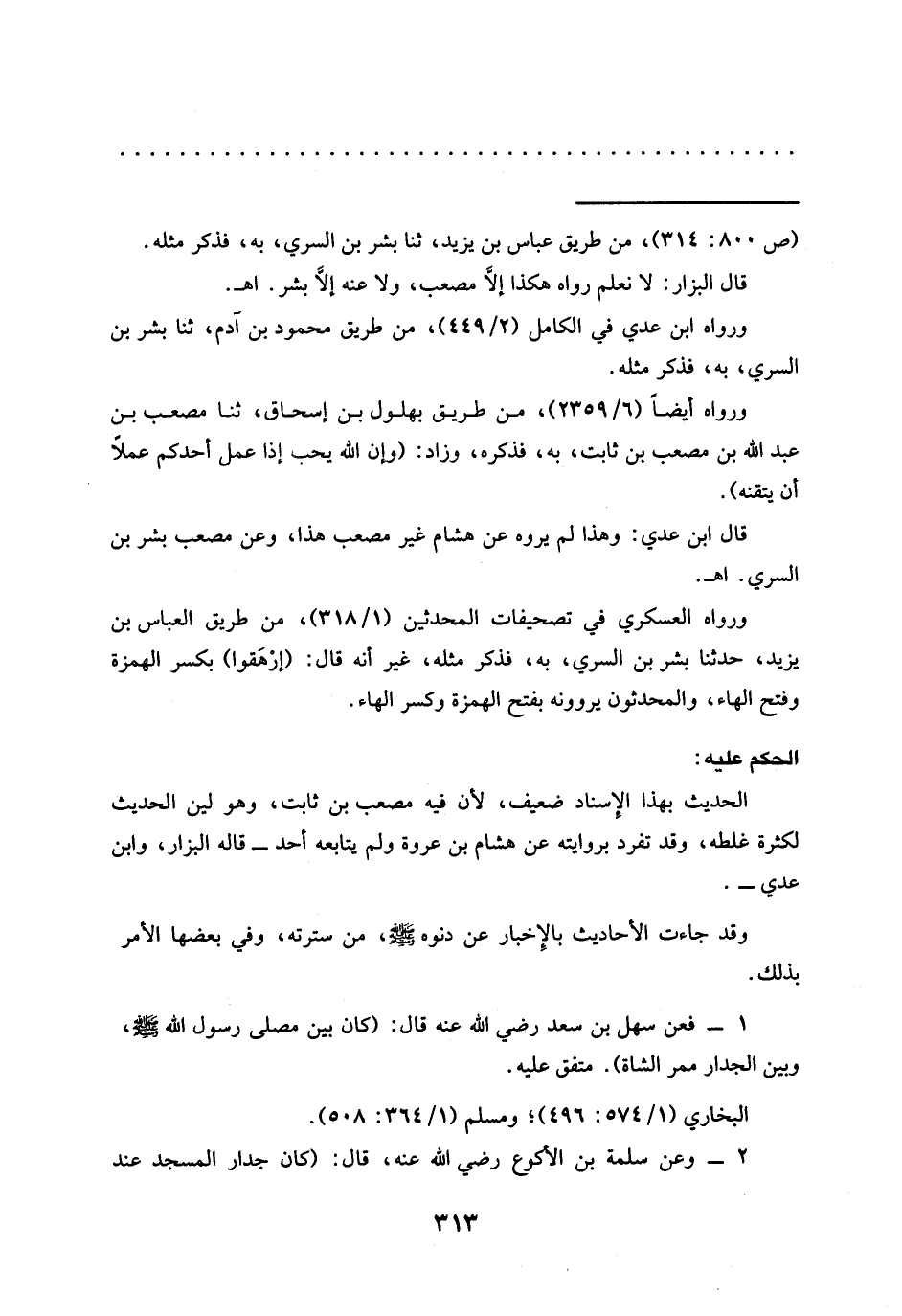 ورواه أيضًا (6/ 2359)، من طريق بهلول بن إسحاق، ثنا مُصْعَبُ بْنُ عَبْدِ اللَّهِ بْنِ مُصْعَبٍ بن ثابت، به، فذكره، وزاد: (وإن اللَّهَ يُحِبُّ إِذَا عَمِلَ أَحَدُكُمْ عَمَلًا أَنْ يتقنه).