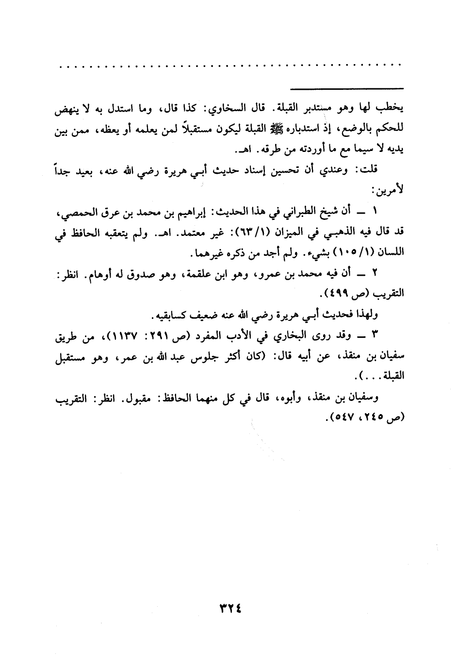 3 - وقد روى البخاري في الأدب المفرد (ص 291: 1137)، من طريق سفيان بن منقذ، عن أبيه قال: (كان أكثر جلوس عبد الله بن عمر، وهو مستقبل القبلة ...).