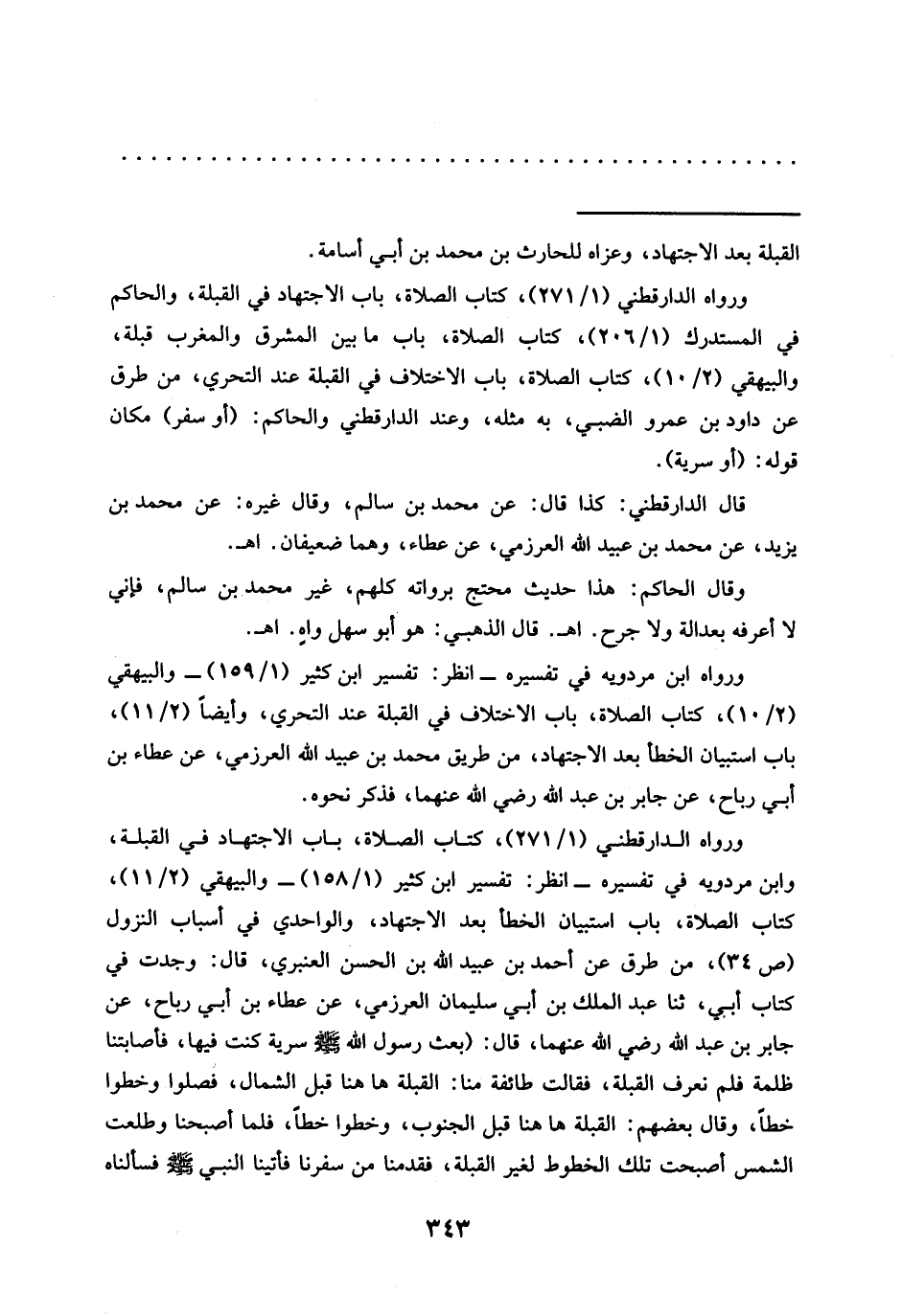 = القبلة بعد الاجتهاد، وعزاه للحارث بن محمد بن أبي أسامة.