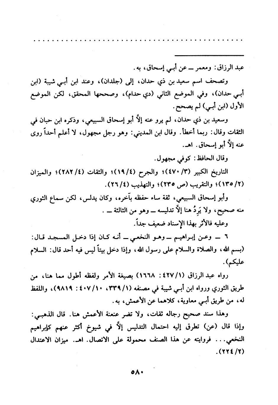 وأبو إسحاق السبيعي، ثقة ساء حفظه بآخره، وكان يدلس، لكن سماع الثوري منه صحيح، ولا يَرِدُ هنا إلَّا تدليسه -وهو من الثالثة-.