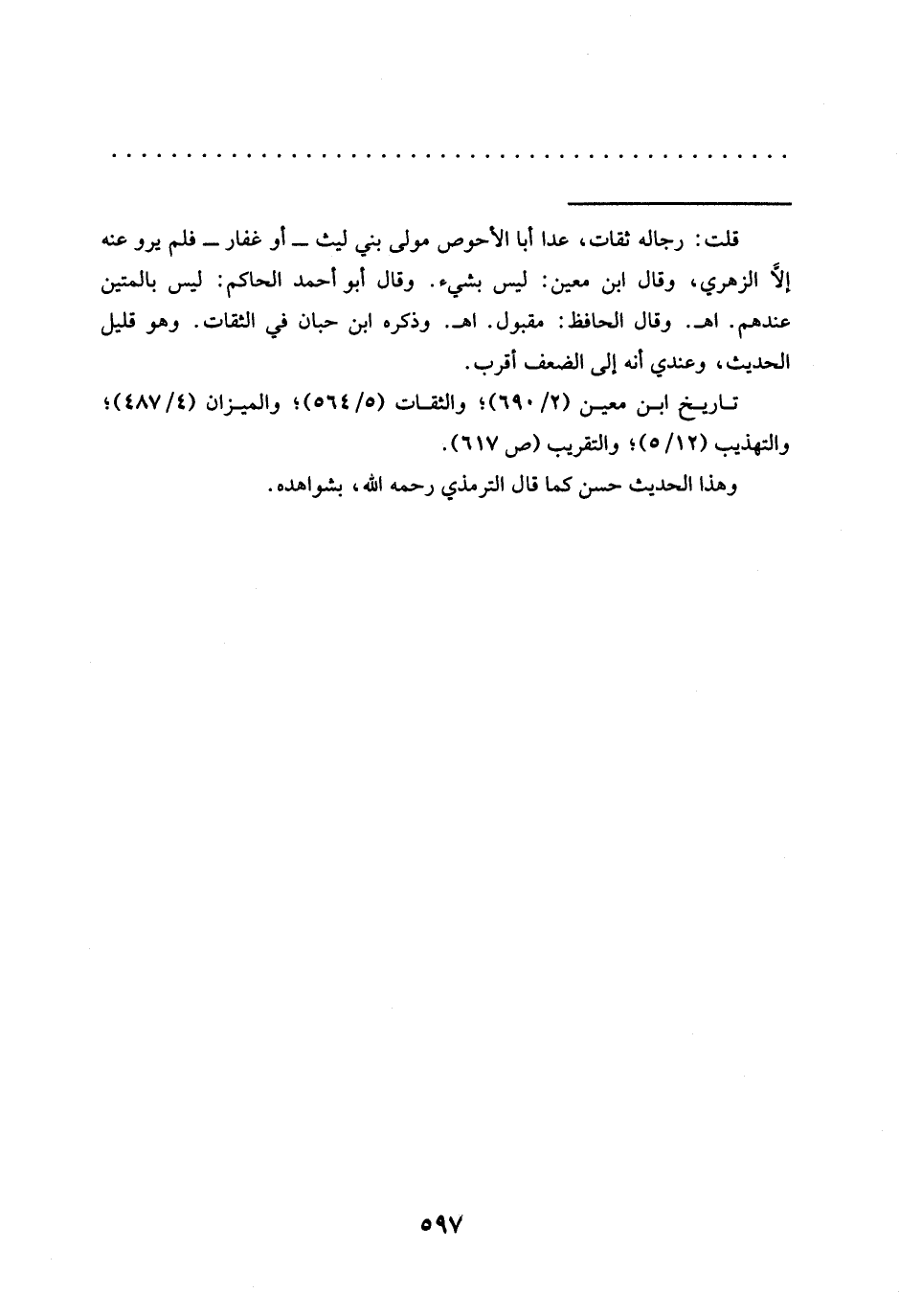= قلت: رجاله ثقات، عدا أبا الأحوص مولى بني ليث -أو غفار- فلم يرو عنه إلَّا الزهري، وقال ابن معين: ليس بشيء. وقال أبو أحمد الحاكم: ليس بالمتين عندهم. اهـ. وقال الحافظ: مقبول. اهـ. وذكره ابن حبان في الثقات. وهو قليل الحديث، وعندي أنه إلى الضعف اقرب.