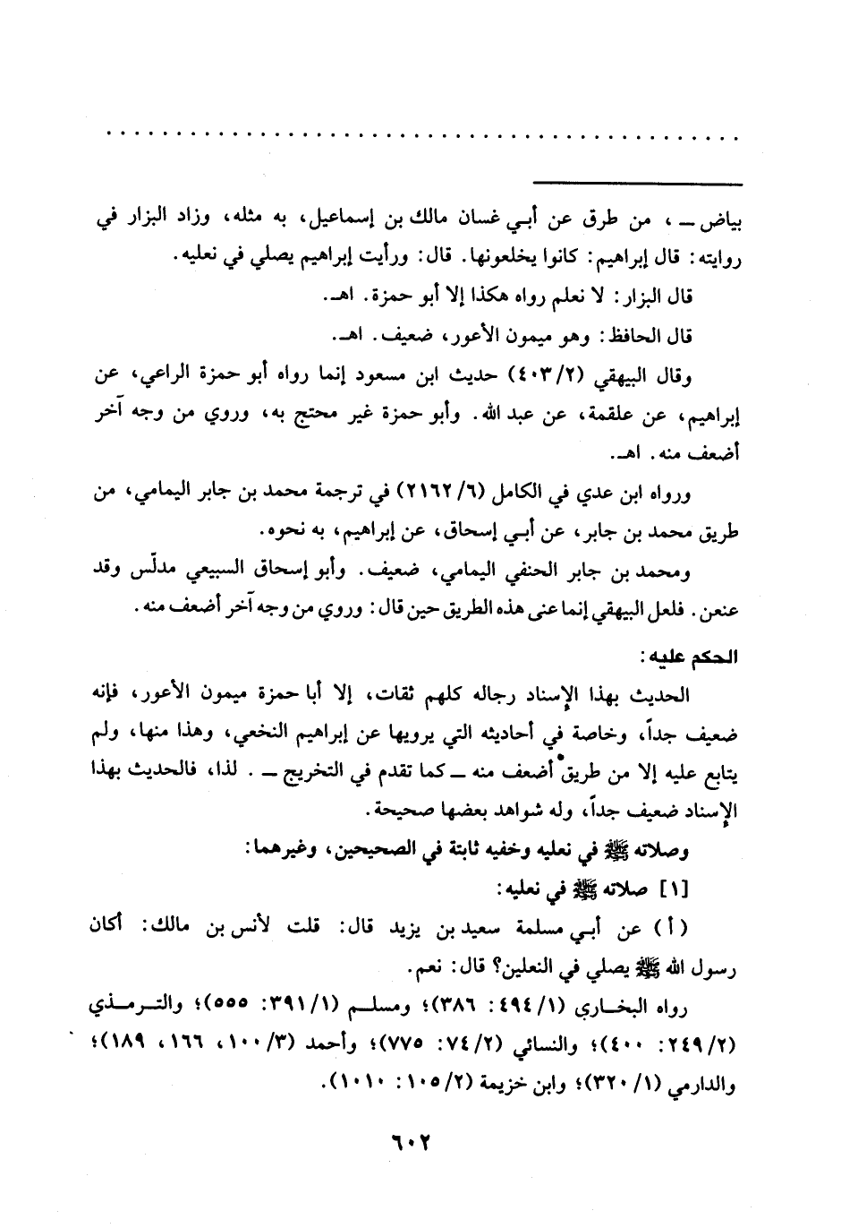 وصلاته -صلى الله عليه وسلم- نعليه وخفيه ثابتة في الصحيحين، وغيرهما: