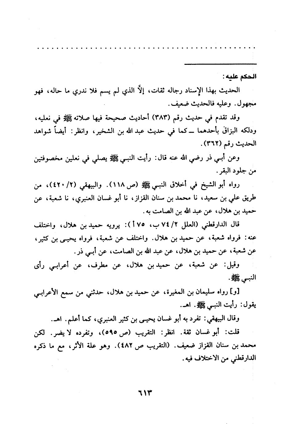 قال الدارقطني "العلل" 2/ 74 ب، 75 أ): يرويه حميد بن هلال، وأختلف عنه: فرواه شعبة، عن حميد بن هلال. واختلف عن شعبة، فرواه يحيى بن كثير، عن شعبة، عَنْ حُمَيْدِ بْنِ هِلَالٍ، عَنْ عَبْدِ اللَّهِ بن الصامت، عن أبي ذر.