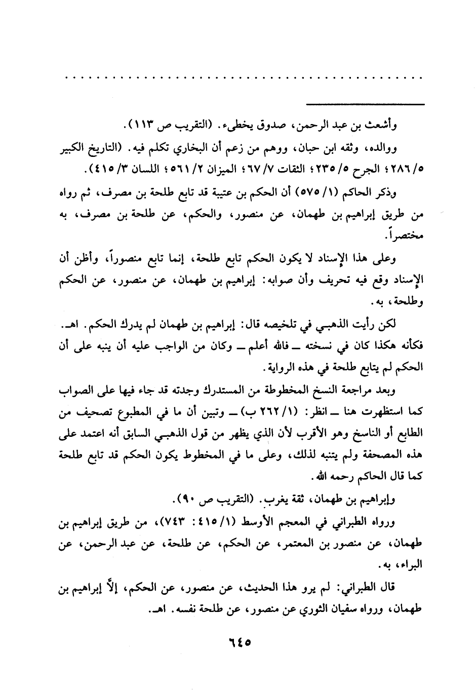وعلى هذا الإسناد لا يكون الحكم تابع طلحة، إنما تابع منصورًا، وأظن أن الإسناد وقع فيه تحريف وأن صوابه: إبراهيم بن طهمان، عن منصور، عن الحكم وطلحة، به.