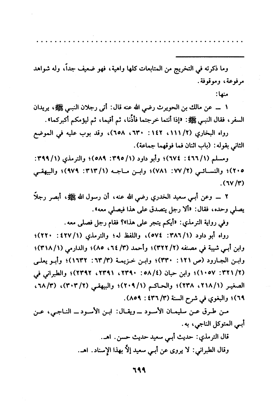 رواه أبو داود (1/ 386: 574)، واللفظ له؛ والترمذي (1/ 427: 220)؛ وابن أبي شيبة في مصنفه (2/ 322)؛ وأحمد (3/ 64، 85)؛ والدارمي (1/ 318)؛ وابن الجارود (ص 121: 330)؛ وابن خزيمة (3/ 63: 1632)؛ وأبو يعلى (2/ 321: 1057)؛ وابن حبان (4/ 58: 2390، 2391، 2392)؛ والطبراني في الصغير (1/ 218، 238)؛ والحاكم (1/ 209)؛ والبيهقي (2/ 303)، (3/ 68، 69)؛ والبغوي في شرح السنة (3/ 436: 859).