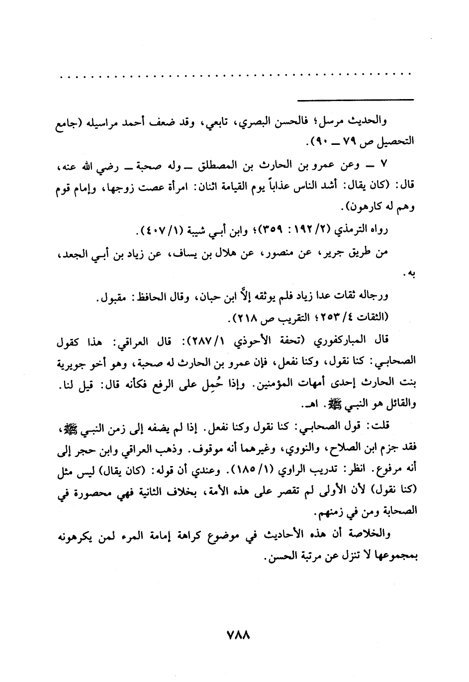 7 - وعن عمرو بن الحارث بن المصطلق -وله صحبة- رضي الله عنه، قال: (كان يقال: أشد الناس عذابًا يوم القيامة اثنان: امرأة عصت زوجها، وإمام قوم وهم له كارهون).