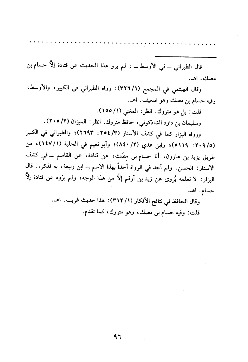 = قال الطبراني -في الأوسط-: لم يرو هذا الحديث عن قتادة إلَّا حسام بن مصك. اهـ.