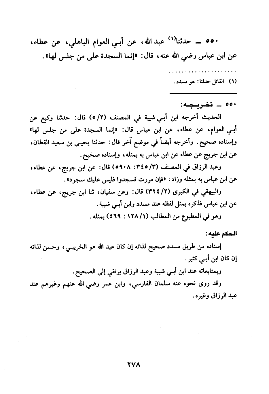 550 - حَدَّثَنَا عَبْدُ اللَّهِ عَنْ أَبِي الْعَوَّامِ الْبَاهِلِيِّ عَنْ عَطَاءٍ عَنِ ابن عباس رضي الله عنه قَالَ " §إِنَّمَا السَّجْدَةُ عَلَى مَنْ جَلَسَ لَهَا "