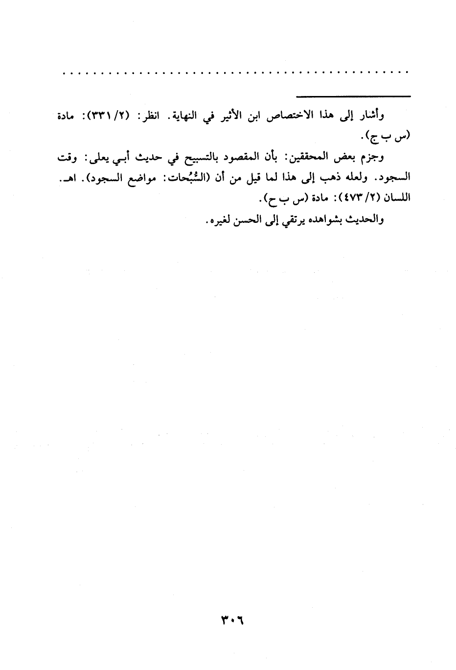 وجزم بعض المحققين: بأن المقصود بالتسبيح في حديث أبي يعلى: وقت السجود. ولعله ذهب إلى هذا لما قيل من أن (السُّبُحات: مواضع السجود). اهـ.