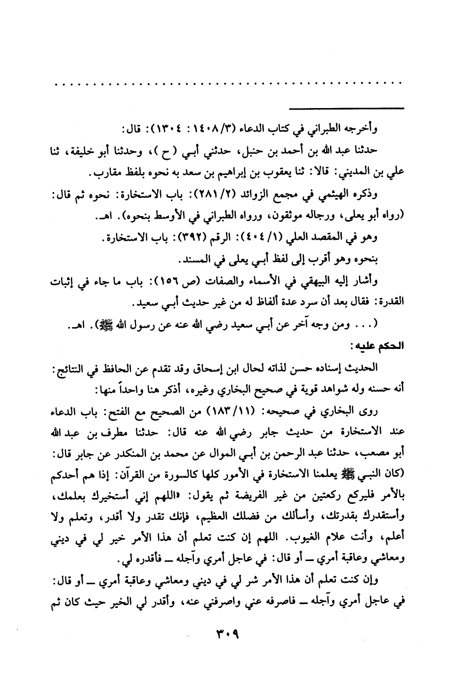 وذكره الهيثمي في مجمع الزوائد (2/ 281): باب الاستخارة: نحوه ثم قال: (رواه أبو يعلى، ورجاله موثقون، ورواه الطبراني في الأوسط بنحوه). اهـ.