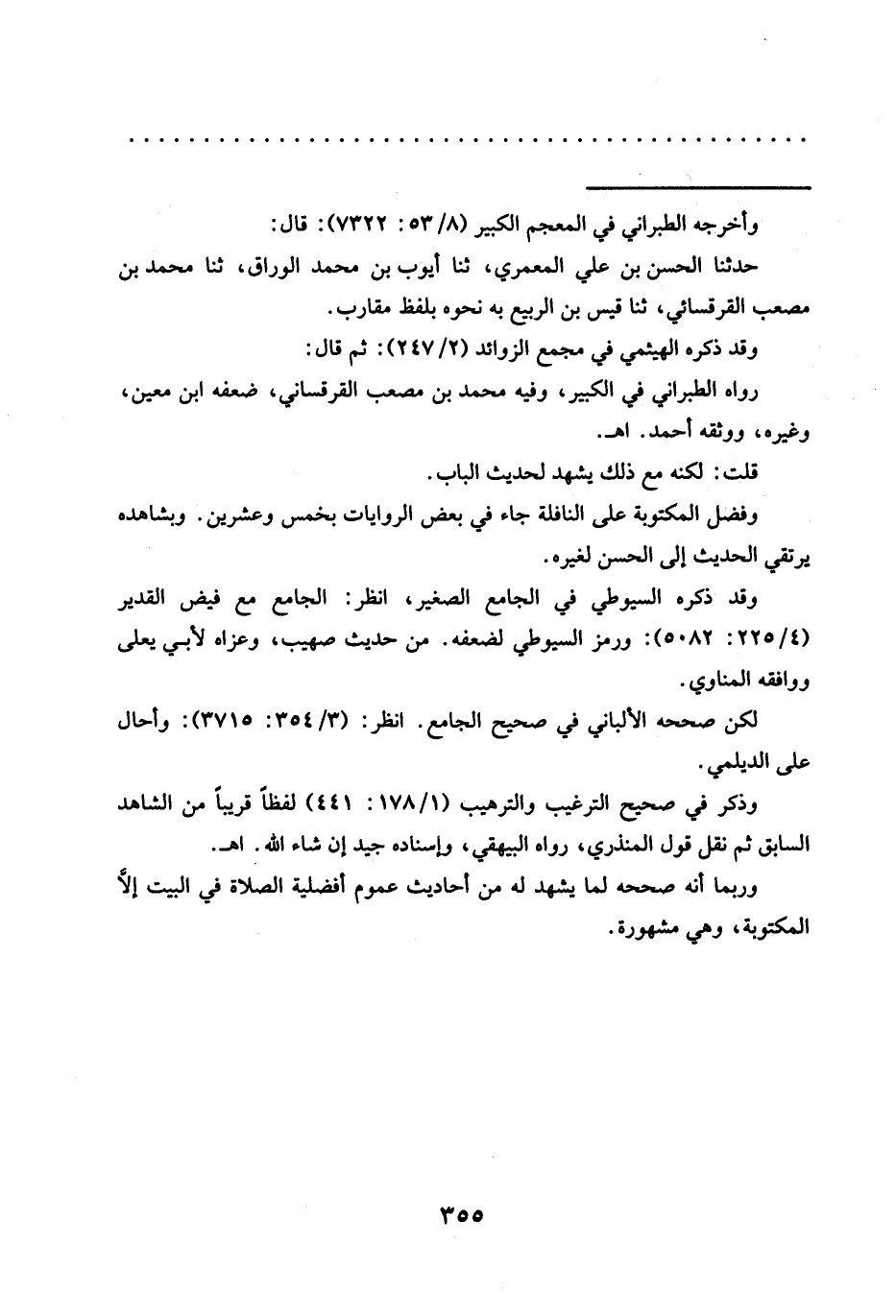 وفضل المكتوبة على النافلة جاء في بعض الروايات بخمس وعشرين. وبشاهده يرتقي الحديث إلى الحسن لغيره.