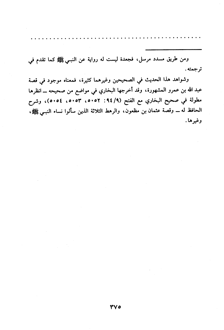 = ومن طريق مسدد مرسل، فجعدة ليست له رواية عن النبي -صلى الله عليه وسلم- كما تقدم في ترجمته.