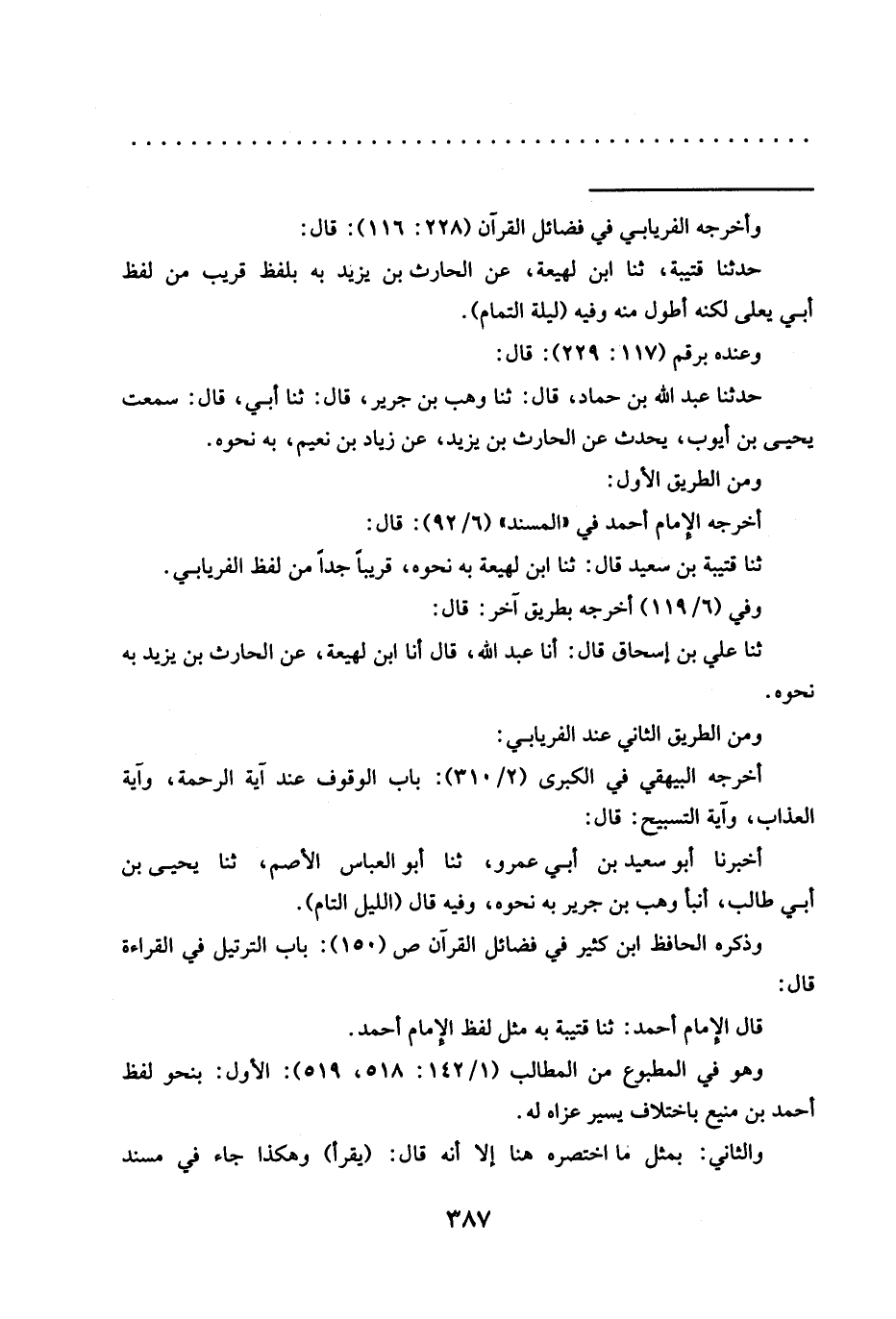 وذكره الحافظ ابن كثير في فضائل القرآن ص (150): باب الترتيل في القراءة قال: