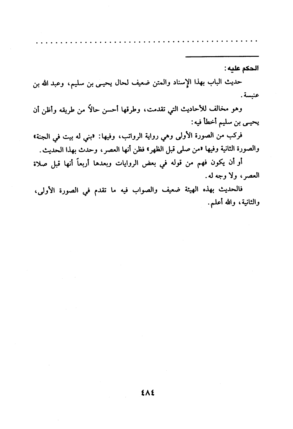 فركب من الصورة الأولى وهي رواية الرواتب، وفيها: "بني له بيت في الجنة" والصورة الثانية وفيها "من صلى قبل الظهر" فظن أنها العصر، وحدث بهذا الحديث.