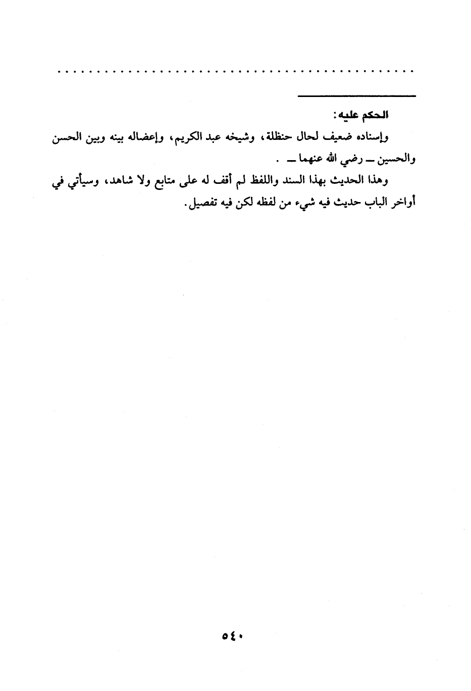 وإسناده ضعيف لحال حنظلة، وشيخه عبد الكريم، وإعضاله بينه ويين الحسن والحسين -رضي الله عنهما-.