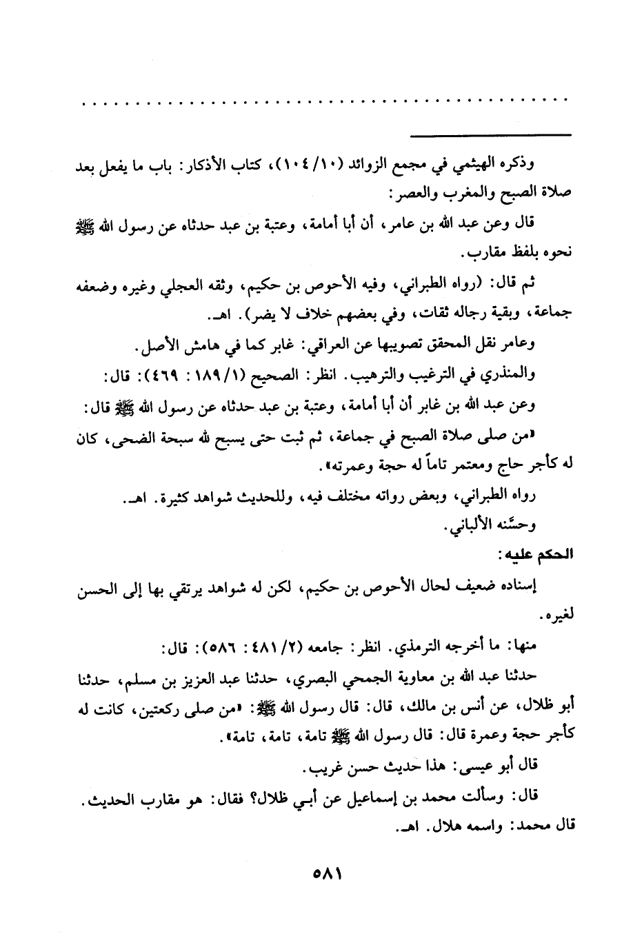 = وذكره الهيثمي في مجمع الزوائد (10/ 104)،كتاب الأذكار: باب ما يفعل بعد صلاة الصبح والمغرب والعصر: