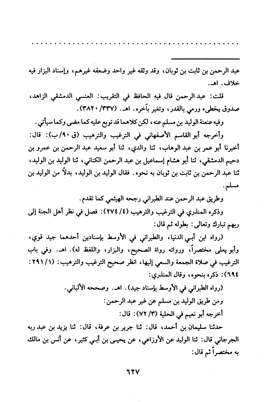 قلت: عبد الرحمن قال فيه الحافظ في التقريب: العنسي الدمشقي الزاهد، صدوق يخطئ ورمي بالقدر، وتغير بآخره. اهـ. (337/ 3820).