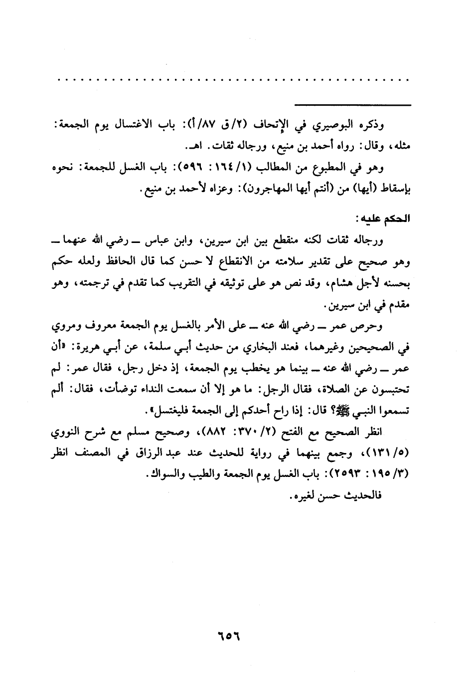 = وذكره البوصيري في الإِتحاف (2/ ق 87/ أ): باب الاغتسال يوم الجمعة: