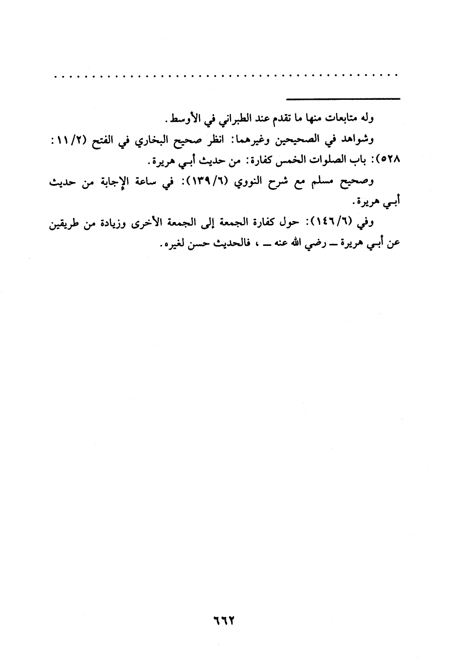 وفي (6/ 146): حول كفارة الجمعة إلى الجمعة الأخرى وزيادة من طريقين عن أبي هريرة -رضي الله عنه-، فالحديث حسن لغيره.