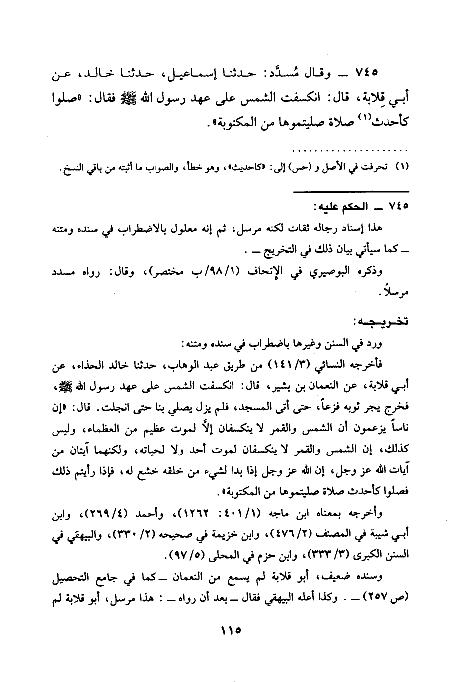 حَدَّثَنَا إِسْمَاعِيلُ حَدَّثَنَا خَالِدٌ عَنْ أَبِي قِلَابَةَ قَالَ انْكَسَفَتِ الشَّمْسُ عَلَى عَهْدِ رَسُولِ اللَّهِ صَلَّى اللَّهُ عَلَيْهِ وَسَلَّمَ فَقَالَ §صَلُّوا كَأَحْدَثِ صَلَاةٍ صَلَّيْتُمُوهَا مِنَ الْمَكْتُوبَةِ