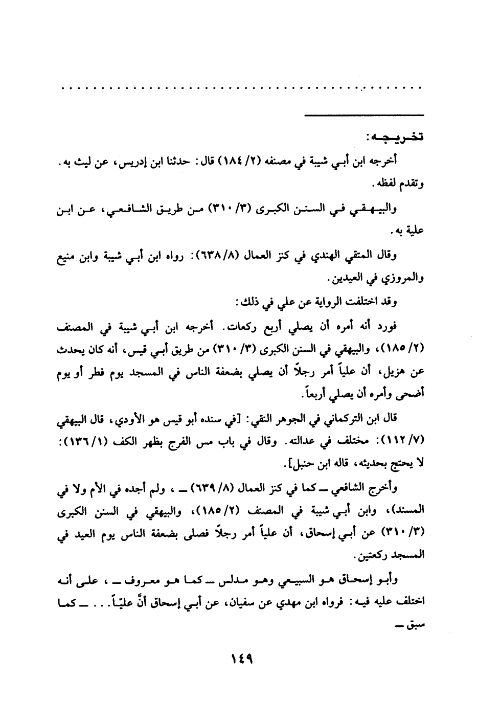 وأخرج الشافعي -كما في كنز العمال (8/ 639) -، ولم أجده في الأم ولا في المسند)، وابن أبي شيبة في المصنف (2/ 185)، والبيهقي في السنن الكبرى (3/ 310) عن أبي إسحاق، أن عليًا أمر رجلًا فصلى بضعفة الناس يوم العيد في المسجد ركعتين.