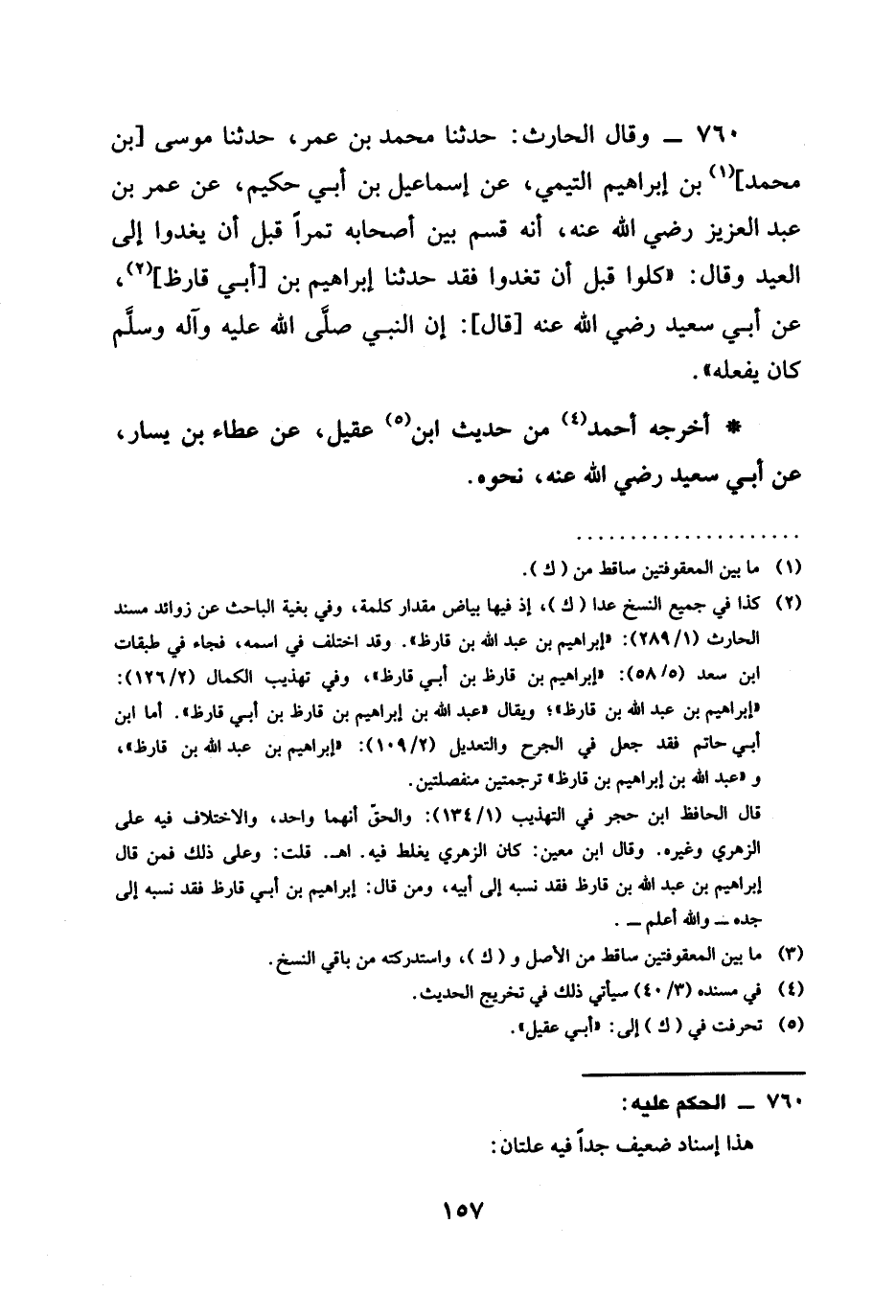 حَدَّثَنَا مُحَمَّدُ بْنُ عُمَرَ حَدَّثَنَا مُوسَى بْنُ مُحَمَّدِ بْنِ إِبْرَاهِيمَ التَّيْمِيُّ عَنْ إِسْمَاعِيلَ بْنِ أَبِي حَكِيمٍ عَنْ عُمَرَ بْنِ عَبْدِ الْعَزِيزِ رَضِيَ الله عَنْهُ أَنَّهُ قَسَمَ بَيْنَ أَصْحَابِهِ تَمْرًا قَبْلَ أن يغدوا إِلَى الْعِيدِ وَقَالَ §كُلُوا قَبْلَ أَنْ تَغْدُوا فَقَدْ حَدَّثَنَا إِبْرَاهِيمُ بْنُ أَبِي قَارِظٍ عَنْ أَبِي سَعِيدٍ رَضِيَ الله عَنْهُ قَالَ إِنَّ النَّبِيَّ صَلَّى اللَّهُ عَلَيْهِ وَسَلَّمَ كَانَ يَفْعَلُهُ