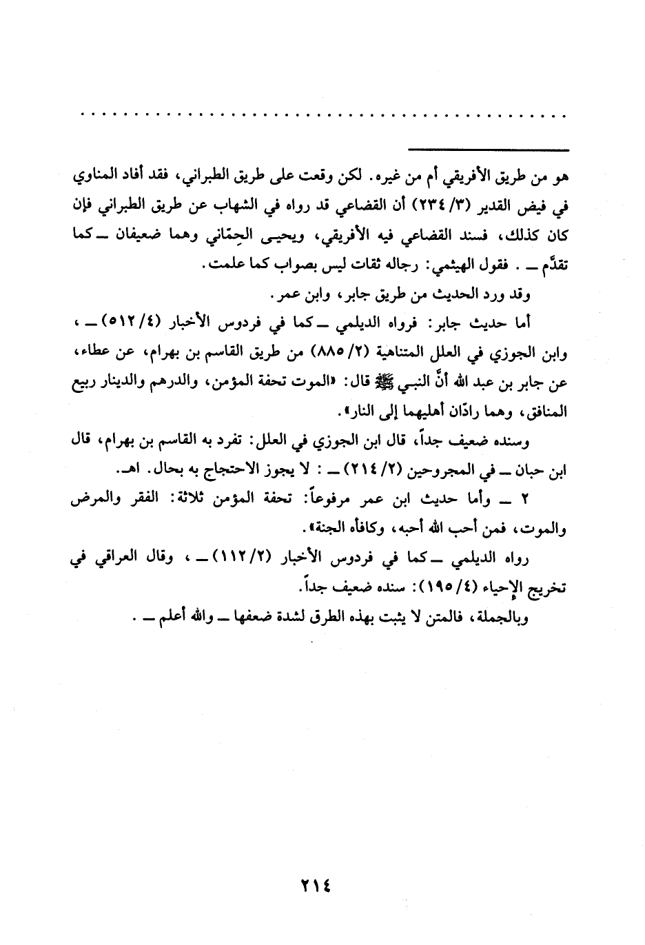 2 - وأما حديث ابن عمر مرفوعًا: تحفة المؤمن ثلاثة: الفقر والمرض والموت، فمن أحب الله أحبه، وكافأه الجنة".