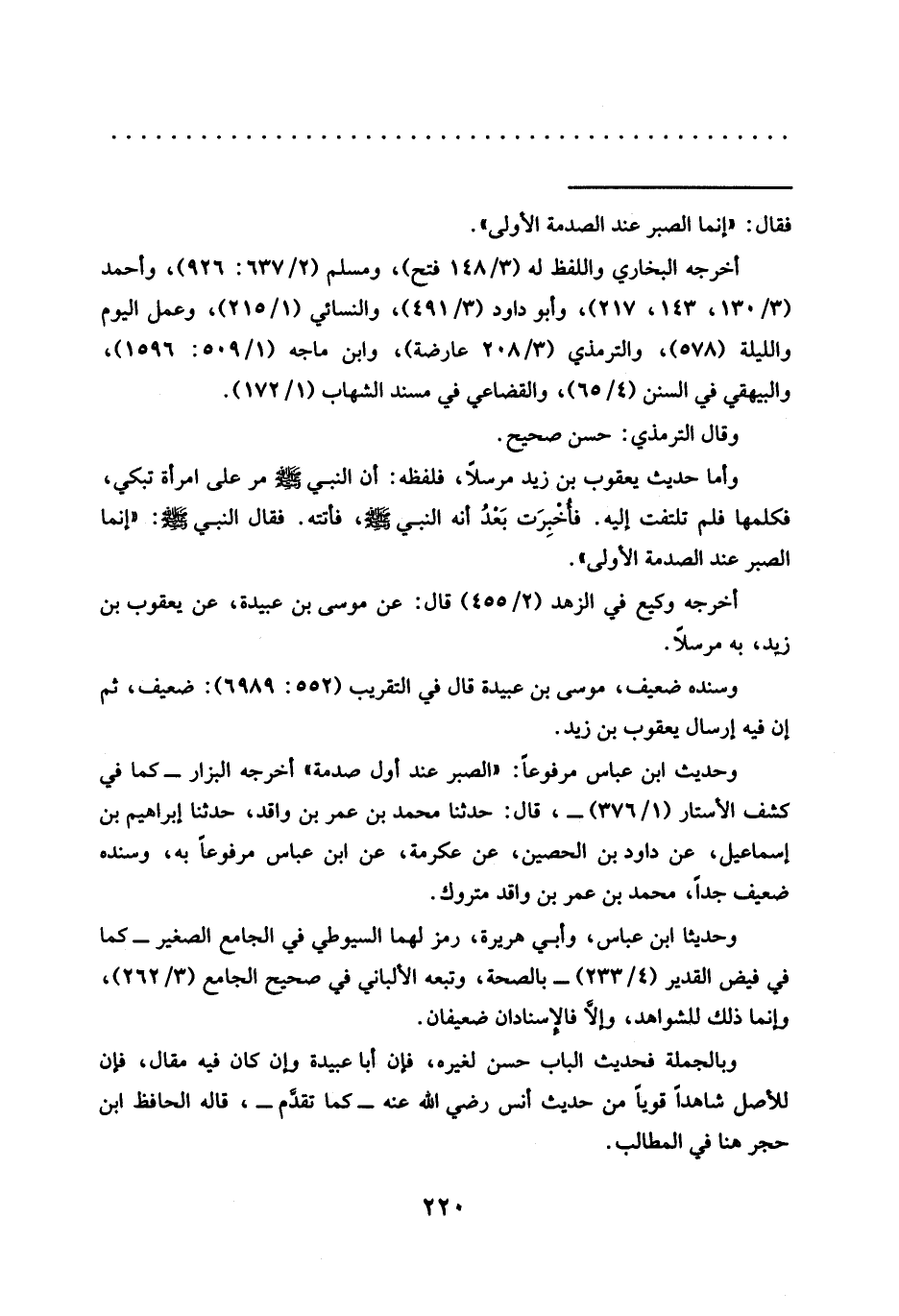 = فقال: "إنما الصبر عند الصدمة الأولى".