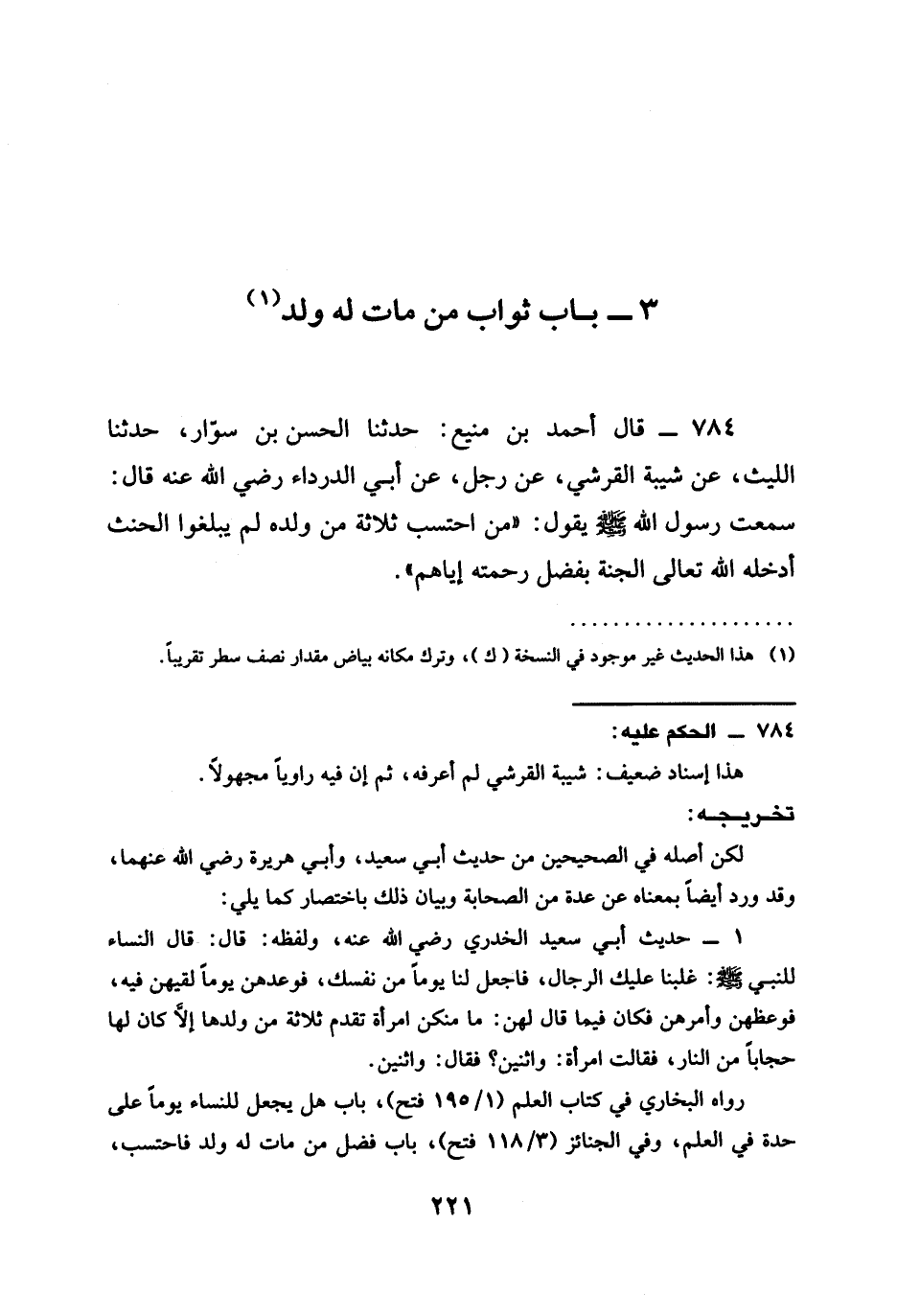(3 - بَابُ ثَوَابِ مَنْ مَاتَ لَهُ وَلَدٌ)