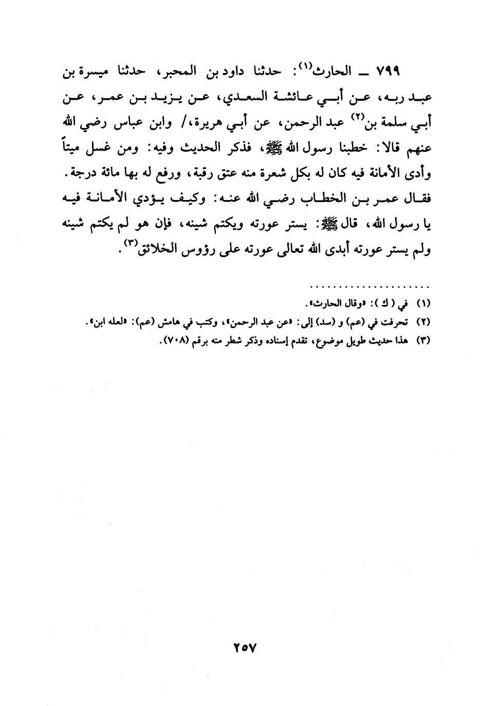 حَدَّثَنَا دَاوُدُ بْنُ الْمُحَبَّرِ حَدَّثَنَا مَيْسَرَةُ بْنُ عَبْدِ رَبِّهِ عَنْ أَبِي عَائِشَةَ السَّعْدِيِّ عَنْ يزيد بن عمر عَنْ أَبِي سَلَمَةَ بْنِ عَبْدِ الرَّحْمَنِ عَنْ أَبِي هُرَيْرَةَ وَابْنِ عَبَّاسٍ رَضِيَ الله عَنْهُمْ قَالَا خَطَبَنَا رَسُولُ اللَّهِ صَلَّى اللَّهُ عَلَيْهِ وَسَلَّمَ فَذَكَرَ الْحَدِيثَ وَفِيهِ §وَمَنْ غَسَّلَ مَيِّتًا وَأَدَّى الْأَمَانَةَ فِيهِ كَانَ لَهُ بِكُلِّ شَعْرَةٍ مِنْهُ عِتْقُ رَقَبَةٍ وَرُفِعَ لَهُ بِهَا مِائَةُ دَرَجَةٍ فَقَالَ عُمَرُ بْنُ الْخَطَّابِ رَضِيَ الله عَنْهُ وَكَيْفَ يُؤَدِّي الْأَمَانَةَ فِيهِ يَا رَسُولَ اللَّهِ قَالَ صَلَّى اللَّهُ عَلَيْهِ وَسَلَّمَ يَسْتُرُ عَوْرَتَهُ وَيَكْتُمُ شَيْنَهُ فَإِنْ هُوَ لَمْ يَكْتُمْ شَيْنَهُ وَلَمْ يَسْتُرْ عَوْرَتَهُ أَبْدَى اللَّهُ تَعَالَى عورته على رؤوس الْخَلَائِقِ