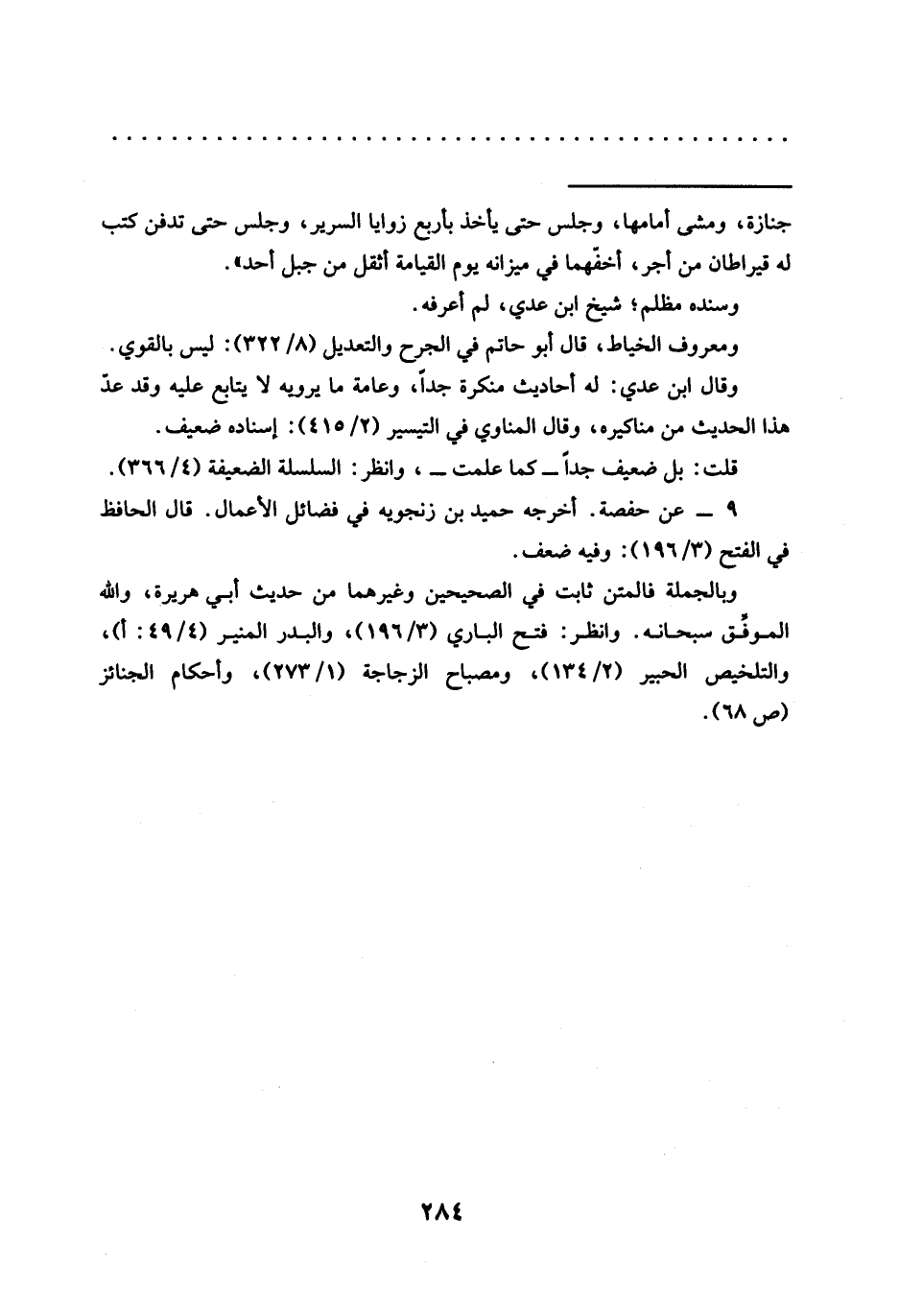 وبالجملة فالمتن ثابت في الصحيحين وغيرهما من حديث أبي هريرة، والله الموفق سبحانه. وانظر: فتح الباري (3/ 196)، والبدر المنير (4/ 49: أ)، والتلخيص الحبير (2/ 134)، ومصباح الزجاجة (1/ 273)، وأحكام الجنائز (ص 68).