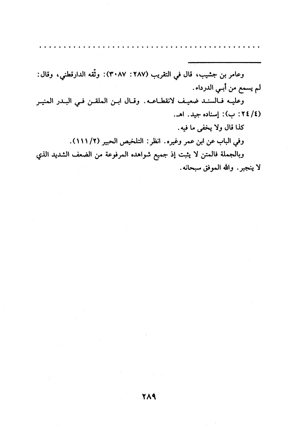 = وعامر بن جشيب، قال في التقريب (287: 3087): وثّقه الدارقطني، وقال: لم يسمع من أبي الدرداء.
