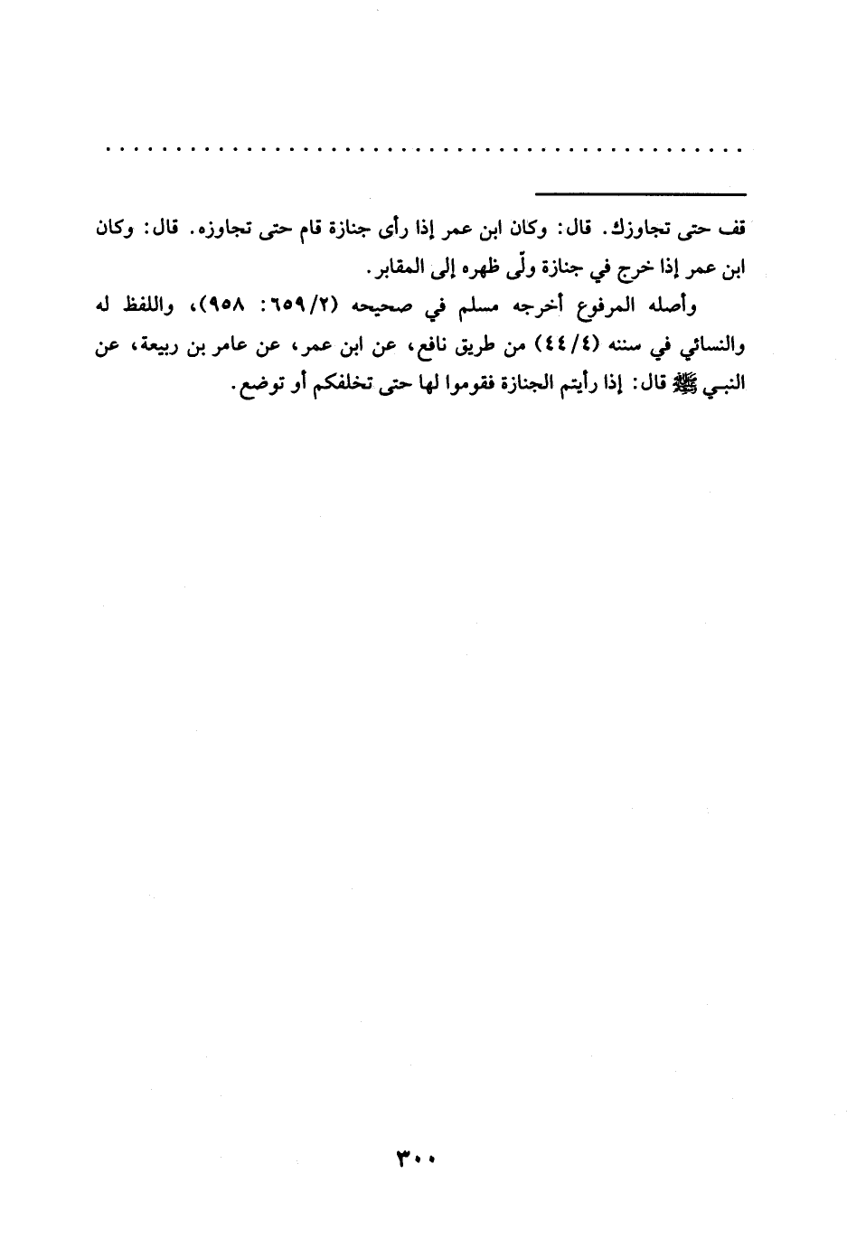 = قف حتى تجاوزك. قال: وكان ابن عمر إذا رأى جنازة قام حتى تجاوزه. قال: وكان ابن عمر إِذَا خَرَجَ فِي جَنَازَةٍ وَلَّى ظَهْرَهُ إِلَى المقابر.