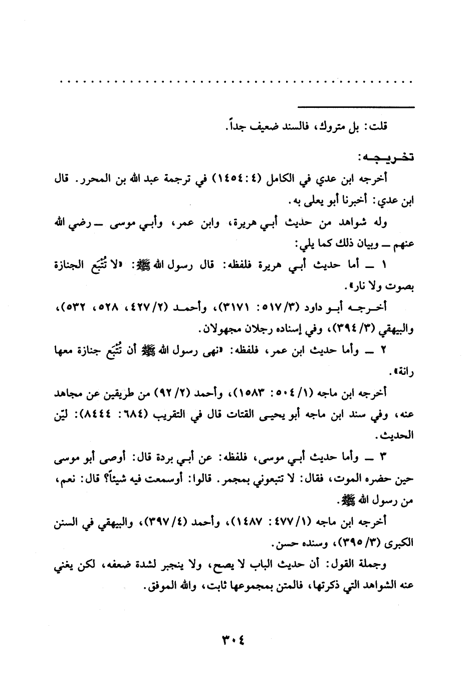 2 - وأما حديث ابن عمر، فلفظه: "نَهَى رَسُولُ اللَّهِ -صَلَّى اللَّهُ عَلَيْهِ وَسَلَّمَ- أن تُتْبَع جنازة معها رانة".