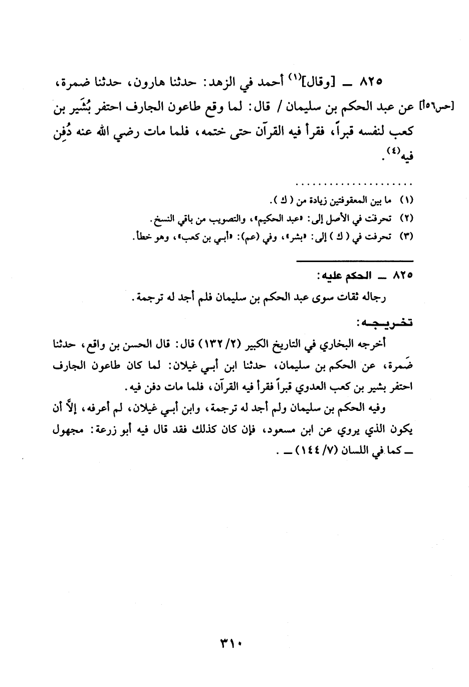 825 - وَقَالَ أَحْمَدُ فِي الزُّهْدِ