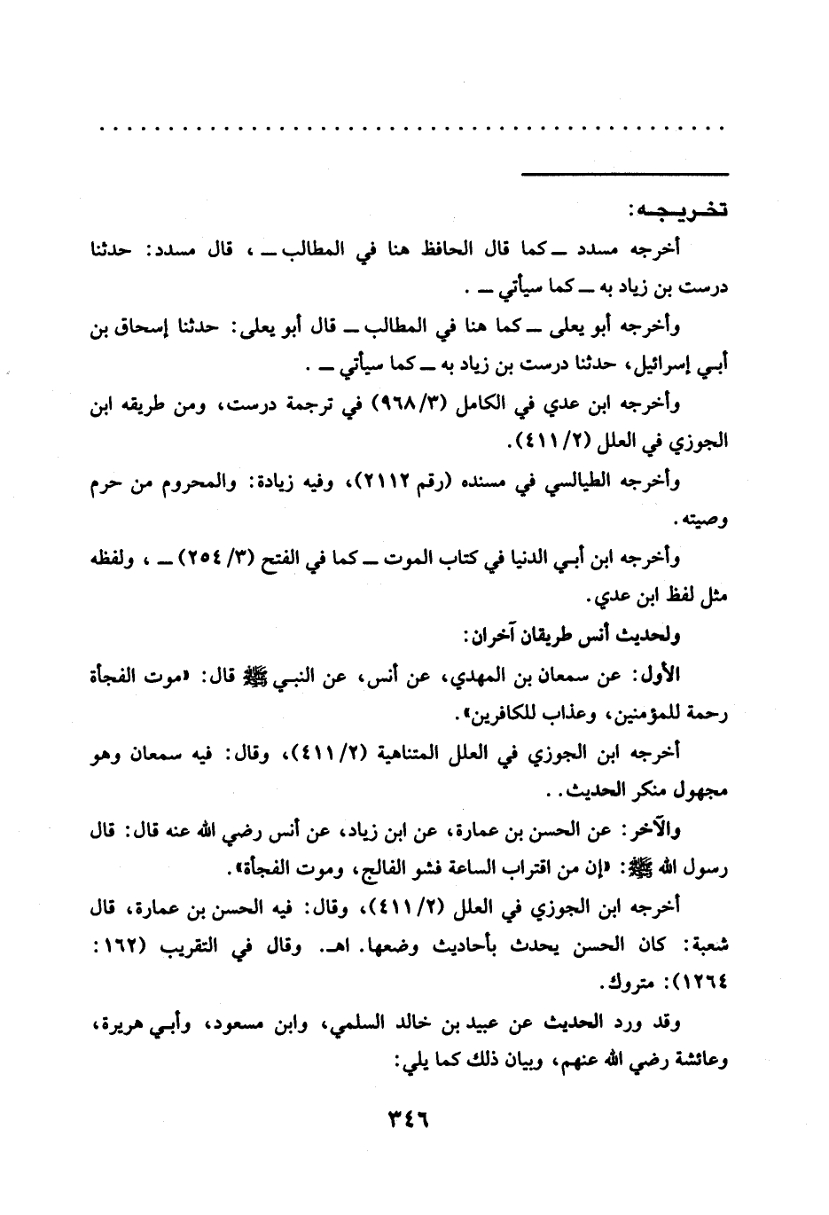 وأخرجه ابن أبي الدنيا في كتاب الموت -كما في الفتح (3/ 254) -، ولفظه مثل لفظ ابن عدي.